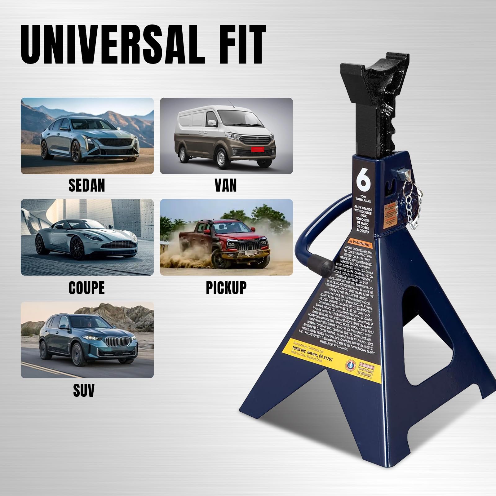- Double locking jack stands that are sold as a pair; Height ranges from 15-3/8" to 23-13/16" with a 6 ton (12,000 lb) capacity each