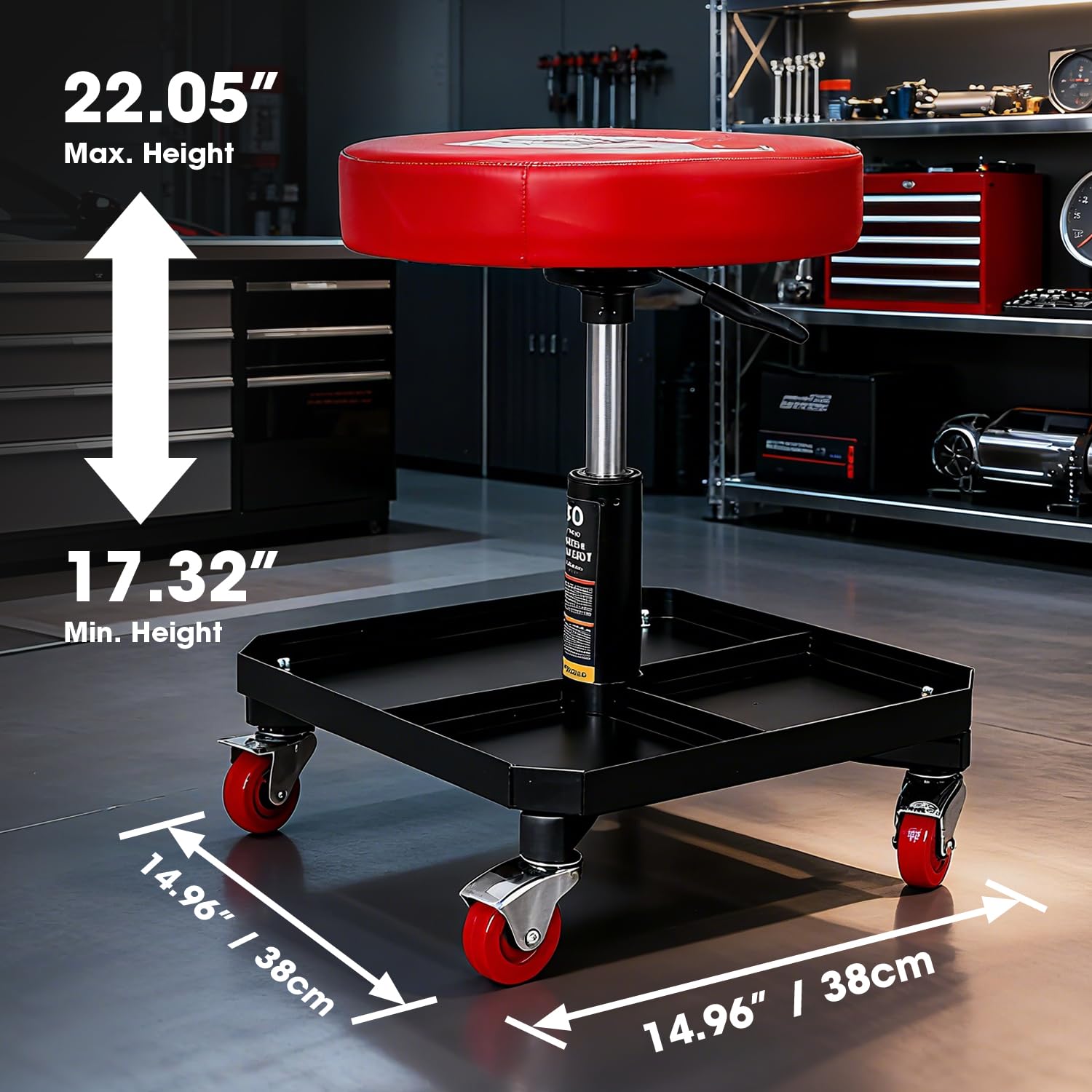 - Features a soft, fully padded vinyl seat for added cushioning, making it comfortable to work on your car, truck, SUV, van, and more